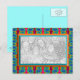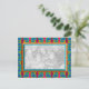 Fügen Sie Ihr eigenes Foto zu dieser farbenfrohen Postkarte des Fotos. Helle Gänge abstraktes Design in Türkis, Orange, Blau und Rot