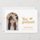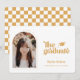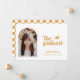 Ankündigung von Retro Type Abschluss Foto. Merkmale, Single-Rahmen Foto, Gradcap Akzent, Retro-Typografie in rustikal Vintag gelb und koordinieren Schachbrett Muster Rückenlehne.