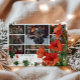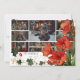 Ein gewagtes und festliches Weihnachtsdesign mit lebhaften, roten Amaryllis-Blume, heiligen Blätter und Wintergrün. Der üppige botanische Rahmen schafft ein warmes rustikales Urlaubsatmotiv, das perfekt für einen fröhlichen, saisonalen Gruß geeignet ist.