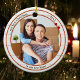 Ein modernes Ornament mit individuellem Foto, gerahmt von einem rustikalen, weißen Holzdesign mit rot-metallischer Auskleidung und eleganten Sternen. Schön für ein erstes Weihnachten in einer neuen Zuhause und anpassbar für andere Situationen.