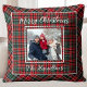 Foto Rustikales Weihnachten Kariertes Kissen. Moderner, roter und grüner Weihnachtsfeiertag Kariert mit personalisiertem Familiennamen.