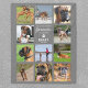 Personalisierte Flockendecke mit einem modernen grauen Hintergrund, der in jede beliebige Farbe verändert werden kann, 11 Fotos von Katze, Hund oder anderen Tieren, die Worte "Sie haben Ihre Pfotenabdrücke für immer auf unseren Herzen verlassen", ihr Name und die Daten.