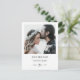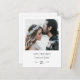 Dieses schlichte Foto Hochzeit speichern Sie das Datum Postkartenvorlage verfügt über ein sauberes, modernes Design, mit Ihrem Lieblings-Foto auf der Vorderseite und ein Kalender auf der Rückseite, um Ihr Datum zu markieren. Klicken Sie auf "Details" neben "Personalisieren Sie diese Vorlage", um Ihre eigenen Daten einzugeben. Wenn es Zeit ist, den Kalender auf der Rückseite zu bearbeiten, klicken Sie auf "Weiter" und folgen Sie den Anweisungen in dieser Beschreibung, um den Kalender anzupassen. Wir haben schwarze und verschiedene Grautöne für den Text auf beiden Seiten verwendet, aber Sie können die Farbe und den Schriftart zu jedem Anzug Ihres Stils ändern. In jedem Fall gehen Sie bitte über den gesamten Text auf beiden Seiten und vergewissern Sie sich, dass Sie alle unsere Beispieltexte durch Ihre eigenen Details ersetzen oder unseren Text löschen, ohne ihn zu ersetzen, wo Sie dies bevorzugen. Zum Beispiel haben Sie vielleicht keine Hochzeitswebseite, und so können Sie sich entscheiden, einfach unseren Beispieltext zu löschen, ohne ihn zu ersetzen, oder Sie können ihn natürlich auch durch eine Nachricht anderer Art ersetzen. Wir haben Platz für Ihre Rücksendeadresse auf der Rückseite in einem unkonventionellen Format und an einem Ort, senkrecht in der Mitte der Karte geschrieben, mit dem Text in eine andere Richtung als der andere Text. Es ist einfach, dies zu übersehen, also bitte achten Sie darauf, es durch Ihre eigenen Rücksendeadressen-Informationen zu ersetzen. Sie können auch die Satzzeichen dieser Adresse ändern, und Sie können es vorziehen, Ihren Namen in Großbuchstaben zu ändern, nur für die ersten Buchstaben und nicht für alle Großbuchstaben usw. Das Anpassen eines Kalenders kann manchmal der schwierigste Aspekt bei der Bearbeitung einer Karte wie dieser sein, aber wir haben es leicht gemacht! Ersetzen Sie einfach unseren Beispieltext mit Ihrem eigenen Monat und Jahr und verweisen Sie dann auf einen vertrauenswürdigen Kalender, um die Zahlen unter jedem Wochentag hinzuzufügen, wobei ein Platz oben oder unten in der vertikalen Spalte für jeden Tag im Bearbeitungsmodus verlassen werden sollte. Sie können einen Kalender finden, auf den Sie sich online beziehen können, und wenn Sie dies tun, vergewissern Sie sich bitte auch, dass es sich um das richtige Jahr handelt! Und schließlich, wenn es darum geht, den Kreis zu verschieben, der Ihren besonderen Tag markiert, schauen Sie sich die Liste der Ebenen auf der links Seite im Bearbeitungsmodus an und klicken Sie auf die Ebene, die wir 'oval' genannt haben. Anstatt den Kreis mit der Maus zu verschieben, bewegen Sie ihn mit den Pfeiltasten auf der Tastatur horizontal und vertikal, bis Sie ihn auf Ihrem Datum platzieren. Dann ersetzen Sie einfach den Beispieltext darunter mit Ihren eigenen Informationen und Sie sind alle Set. Wir haben für die Farbe dieses Markers eine helle Goldstange gewählt, aber Sie können sie in eine beliebige Farbe ändern. Wenn Sie Fragen oder Wünsche haben, senden Sie uns bitte eine Chat-Nachricht. Wir helfen Ihnen gerne weiter!