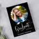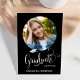Feiern Sie Ihren Absolventen mit dieser schlichten und dennoch eleganten Abschluss-Fotokarte! Mit einem Schwarz-Weiß-Farbschema, einer Kalligraphie-Schrift und einem modernen minimalistischen Design eignet sich diese Karte hervorragend für High School- oder Uni-Noten. Verkünden Sie Ihre Errungenschaft zeitlos und beeindrucken Sie mit einer klassischen Touch für Ihr Party.