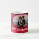 Hübsche rot Blumenrubiner Hochzeit Tasse, liest Happy Anniversary 40 wunderbare Jahre. Schöne rubinrote Chrysanthemum 40 Jubiläum Tasse mit Ihrem eigenen Foto anpassen. Die rubinische Hochzeit ist das 40. Jubiläum und ist traditionell mit rubinroter Farbe assoziiert. Auch großes Design für 20 Jahre (China), 26 Jahre (Originalbild), 36 Jahre (Knochen-China).