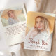 Moderne Abschluss Dankeschön-Karte mit einem benutzerdefinierten vertikalen Foto auf der Vorderseite und einem horizontalen Foto auf der Rückseite. Die Worte "Danke" erscheinen in Terracotta-Skript, mit Ihrem Namen und Jahr des Abschlusses unten in sans serif Schriftart. Personalisieren Sie die Rückseite mit einer Nachricht Ihrer Wahl in Terracotta Sans Serif auf einem beigen Hintergrund, und fügen Sie Ihre Signatur Zeile in Handschrift Skript. Ersetzen Sie die Beispielbilder einfach durch eigene Fotos. Ein Bildschirm mit weißem Farbverlauf trägt dazu bei, den Text auf der Vorderseite der Pop sicherzustellen. Ideal für High School oder Uni-Abschluß.