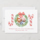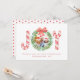 Diese Karte ist ideal, um während der Ferienzeit fröhliche Grüße zu versenden. Dieses schöne Design mit handgemalten Wasserfarben, roten und weißen Süßspeisen und einem grünen Kranz mit einem schönen roten Bogen. Auf der Rückseite der Karte befindet sich ein klassisches rotes Polka-Punktmuster. (Personalisieren Sie Foto, Nachricht und Jahr.)