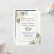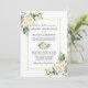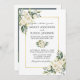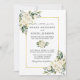Wasserfarbe Elfenbeinweiße Blumengrün Hochzeitseinladung Karte beinhaltet Elfenbein cremefarbene Rosen und botanische Vegetation. Goldrahmen, Foto zurück