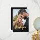 Moderne Hochzeit Dankeschön-Karte mit einem individuellen vertikalen Foto. Die Worte "danke" erscheinen in goldenen Imitat-Folienskripten. Fügen Sie Ihre Namen und das Datum der Hochzeit unten in weißen Sans Serif Schriftart. Personalisieren Sie die Rückseite mit einer Nachricht Ihrer Wahl in weißen Sans Serif auf schwarzem Hintergrund. Ersetzen Sie das Beispielbild einfach durch Ihr eigenes Hochzeitsbild. Ein Schwarzer Farbverlaufsbildschirm trägt dazu bei, den Text auf der Vorderseite der Pop sicherzustellen.