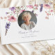 Elegante, weiße, rosa, violette Wildblume, Foto "In Loving Memory" Feier des Lebens, Begräbnisgastronomie, schöne Schrift und Wildblumen.