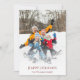 Moderne Familienurlaubskarte, mit Wintermotiv und rotem Typografie-Design. Mit der anpassbaren Rot-Schrift können Sie Ihren eigenen Text hinzufügen. Sie ändern auch das Foto mit Ihrem eigenen, um einzigartig zu machen. Ideal, um Ferien oder Weihnachten Wünsche zu Liebenden weit und in der Nähe.
