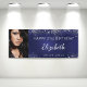 Feiern eines 21. (oder eines beliebigen Alters) Meilensteins Geburtstags eines Mädchens/einer Frau. Ein dunkelblauer Hintergrund. Die blaue Farbe ist ungleichmäßig. Dekoriert mit Imitaten silberner Glitzer Staub. Personalisieren und fügen Sie Ihr eigenes Foto des Geburtstagsmädchens hinzu. Verwenden Sie ein Foto in vertikaler/porträtgroßer Größe. Der Text: Der Name in Grau mit einem modernen handgeschriebenen Stilskript. Personalisieren und fügen Sie einen Namen, Alter 21 und ein Datum. Kann sowohl als Begrüßungsbanner oder als Party Wanddekoration verwendet werden.