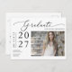 Ja! Ihre Mittelschule, High School, Uni/Uni, Techschule oder Studentin des Graduiertenstudiums hat es geschafft und ist geschlossen! Feiern Sie einen wertvollen Augenblick ihres Lebens und senden Sie diesen Abschluss Ankündigung Postkarte. Diese Postkarte besticht durch einen schlichten, modernen minimalistischen Stil mit einer schönen Kalligraphie-Schrift und dem Foto des Absolventen. Passen Sie den Text und die Fotos einfach in der Personalisierungsbox an und ersetzen Sie ihn. Bitte beachten Sie: Die eleganten Kalligraphieskripte-Formulierungen "graduate" zusammen mit den Zeilen und anderen grafischen Werken und Elementen können nicht bearbeitet, gelöscht oder verschoben werden. Sie sind repariert.