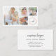 Chic und elegante Visitenkarten für Fotografen bieten vier Ihrer besten Fotos, die in einem Collage Layout angeordnet sind, mit Ihren Initialen oder Monogramm in Kalligraphie-Skript in einem Imitat Rose Goldfolie abstrakten Kreis. Fügen Sie Ihre vollständigen Kontaktdaten auf der Rückseite ein.