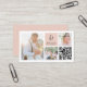 Chic und elegante Visitenkarten für Fotografen bieten vier Ihrer besten Fotos, die in einem Collage Layout angeordnet sind, mit Ihren Initialen oder Monogramm und Ihrem Firmennamen in moderner Kalligraphie und Blockschrift sowie einem anpassbaren QR-Code. Fügen Sie Ihre vollständigen Kontaktdaten auf der Rückseite auf einem rot-rosa Hintergrund hinzu.