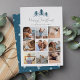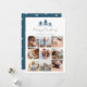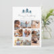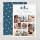 Mit dieser modernen Urlaubskarte können Sie 9 beliebte Fotos in einer quadratischen Collage teilen, die oben in der handgeschriebenen Schriftzeichen "Frohe Weihnachten" mit einem Trio skizzierter Kiefernbilder in Blau zeigt.