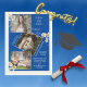 Personalisierte 4 Foto Collage Graduation Party Ankündigung mit blauem Hintergrund. Geprägt mit süßen Aquarellfarben, weiße Molkereien. Einfach und süß. Fügen Sie Ihre speziellen Fotos hinzu, um Ihre eigene persönliche Ankündigung zu erstellen. Andere Farben und Stile verfügbar.