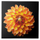 Gartengepflasterte Keramik mit der feurigen und dramatischen Four Queens Dahlia Blume auf schwarzem Hintergrund.
