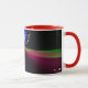 This geometric coffee mug features a custom colorful four-way wave theme modern design. Text customization and additional mug colors features are available to personalize to your preference.
