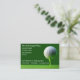 Cartes de visite de l'entraînement et de la fourniture de golf dans un modèle de conception simple sur mesure avec graphique d'une balle de golf sur un terrain de golf et un agencement simple vous pouvez customiser en ligne.