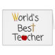Collection de fournitures scolaires cool pour le meilleur enseignant du monde. Caractéristiques d'utilisation de crayons, de règles et d'une pomme rouge brillante dans le texte. Ces produits font de superbes cadeaux pour votre enseignant préféré !