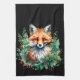 Ein kleiner roter Fuchs gleicht sich aus heiligen Ästen aus, mit hellen, roten Beeren in dieser reizvollen Aquarellfarbe auf einem Weihnachtshandtuch. Ideal für alle, die Füchse, Natur und wild lebende Tiere Lieben.