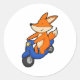 Fox as Biker with Scooter Runder Aufkleber