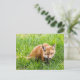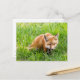 Dieser bezaubernde rote Fuchskub (Kit) sitzt im großen Gras außerhalb seiner Höhle.