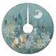 Fox-Familie in Forest Vollmond-Schneefall Polyester Weihnachtsbaumdecke