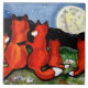 Fox Family Watching Moon Dark Blue 6" Tile Trivet Fliese