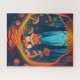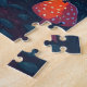 Farbenfrohe Puzzle mit Fuchs in einem Wald mit Pilzen. Night Szene Tierbild mit einem magischen und skurrilen Stil.