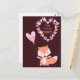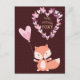 Niedlicher kleiner Fuchs mit einem rosa Ballon mit den Worten "Happy Birthday FOXY", geschrieben in einem Herzen von bunten Herzen.