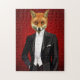 Fox In Abend Anzug, Portrait von Fab Funky. Der Fuchs ist gut gekleidet und hat einen roten Hintergrund. | 190731D