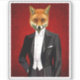 Fox In Abend Anzug, Portrait von Fab Funky. Der Fuchs ist gut gekleidet und hat einen roten Hintergrund. | 190731D