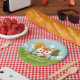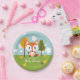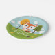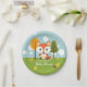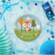 Ein niedlicher orange Rot- und Weißbabyfuchs trägt ein Paar gelbe Windeln, die durch ein Windel-Button gehalten werden. Eine Eichel sitzt nahe seinem buschigen Schwanz. Diese fox Babyduschenentwurf des Geschlechtes neutralen mit Herbst farbigen Bäumen und Eichen-Blätter an einem hellen und flaumigen Wolkentag ist für eine themed Babydusche der Fallwaldfreunde für die Mamma perfekt, die einen Babyjungen oder ein Babymädchen erwartet. Grafik © Chrissy H. Studios, LLC. Alle Rechte vorbehalten.