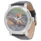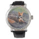 Uhr, Vintage Männeruhr mit schwarzem Lederarmband
