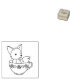 Ein hübscher kleiner Fuchs mit großen Ohren und buschigem Schwanz sitzt in einem Teekessel mit Blume.