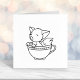 Ein hübscher kleiner Fuchs mit großen Ohren und buschigem Schwanz sitzt und gähnt in einem Teacup. Kann als Farbseite verwendet werden.