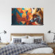 Ein Fuchs steht selbstbewusst und zeigt sein lebendiges orangefarbenes Fell. Der Hintergrund ist mit einem geometrischen, bunten Muster versehen und schafft eine lebendige Innenatmosphäre.