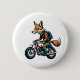 2 D Veranschaulichung eines anthropomorphen Fuchses, der ein Motorrad fährt. KI generierte Design.