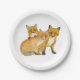 Ein Aquarellbild von drei Fuchskits schmückt diese hübschen Party-Teller! Passen Sie die Hintergrundfarbe an, indem Sie sie selbst in Anzug setzen!