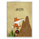 Un mignon renard avec un sourire sur le visage pédale sur un haut flanc de montagne sur un monocycle. Les pins sont vus dans l'arrière - plan tandis que les oiseaux volent dans l'air. A flanc de montagne, des mots d'encouragement et un rappel que vous êtes plus qu'un conquérant. Design original par Christie Black de Creations from the Heart.