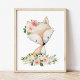 Fox, Waldtiere, Boho, rosa Blume Poster
