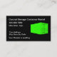 Visitenkarten für einen Container-Mietservice, der Lagerboxen vermietet und verkauft, die manchmal als Seecontainer, Lagercontainer oder Versandcontainer bezeichnet werden. Eine doppelseitige Visitenkarte mit zwei Seitendruck ist inbegriffen.