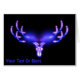 Une image fractale, à l'allure néon, violette et bleue, ressemblant à la tête d'un animal en berne sur un arrière - plan sombre. Ajoutez votre propre texte.