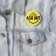 Frag Me Personalisiert Yellow Volunteer Abzeichen Pinback-Taste mit fett-und eyecatching Typografie-Text als ein lächelndes Emoji aussehen. Lächeln, helfen, Volunteer, Freiwillige Geschenke, niedlich, lebendig, kühl, hell, kindisch, Kinder, helfen einander, frag um Hilfe