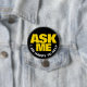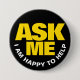 Frag mir Ich bin gerne zu helfen, Slogan lächeln Kunden-Service-Verbindung oder Helfer-Button-Abzeichen. Lass deinen Kunden oder der Öffentlichkeit, dass du für dieses hellgelbe und schwarze Abzeichen zur Verfügung stehst. Die Hintergrundfarbe kann bei Bedarf geändert werden. Entworfen von www.mylittleeden.com