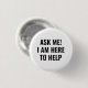 Frag mir Ich bin hier, um Weiß und Schwarz Freiwilligen, Angestellten oder Mitarbeiter-Taste zu helfen. Minimalistischer schlichter eleganter Stil. Schwarzer Text auf weißem Hintergrund.
