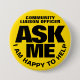 Frag mir Ich freue mich, Ihnen zu helfen, Slogan Kundenservice-Client-Verbindung oder Helfer-Button-Abzeichen anpassen mit Ihrem eigenen Job Titel oder Firmennamen. Lass deinen Kunden oder der Öffentlichkeit, dass du für dieses hellgelbe und schwarze Abzeichen zur Verfügung stehst. Die Hintergrundfarbe kann bei Bedarf geändert werden. Entworfen von www.mylittleeden.com