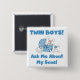 Die stolze junge Mutter und Papa der Baby-Jungen-Zwillinge wird dieses niedliche Design mit zwei Jungen und blauen Text, der lautet "Twin Boys! Frag mir von meinen Söhnen!" Zwei Boys T - Shirt, Karten, Tasten, Magnete, Taschen, Mousepads und mehr!